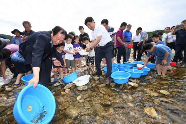 이날 행사에는 심재국 평창군수를 비롯한 유인환 군의회의장과 평창군의회의원, 수산자원보호명예감시원, 평창어린이집 원생, 중1리 마을주민 등 70여명이 참여했다.