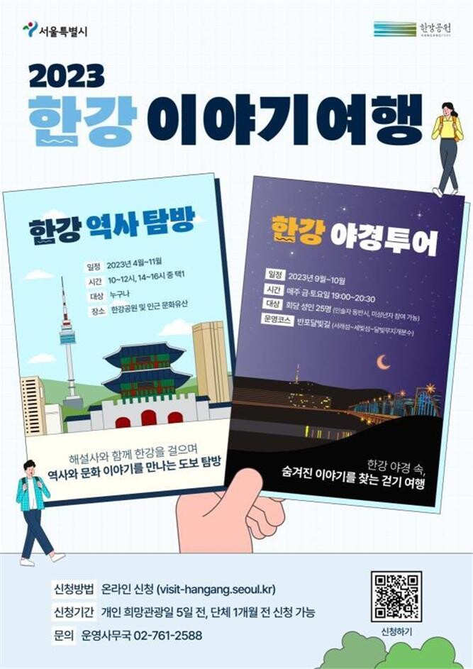 ‘정규탐방’과 ‘한강야경투어’에 참여를 원하는 시민은 23일부터 한강이야기여행 누리집을 통해 신청하면 된다. 선착순 마감되므로 참여 희망일 5일 전까지 신청하는 것을 권장한다.