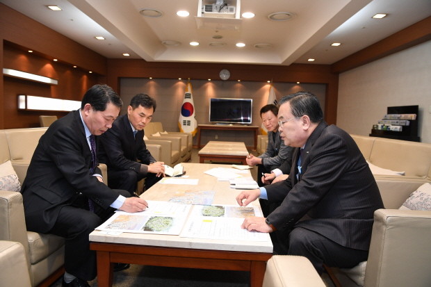 | ▲지난 2월 17일 이성호 양주시장(우측)은 한국철도공사 광역철도본부장을 직접 면담해 전철 증편을 요구하고 있는 모습. <사진제공=양주시청> |
