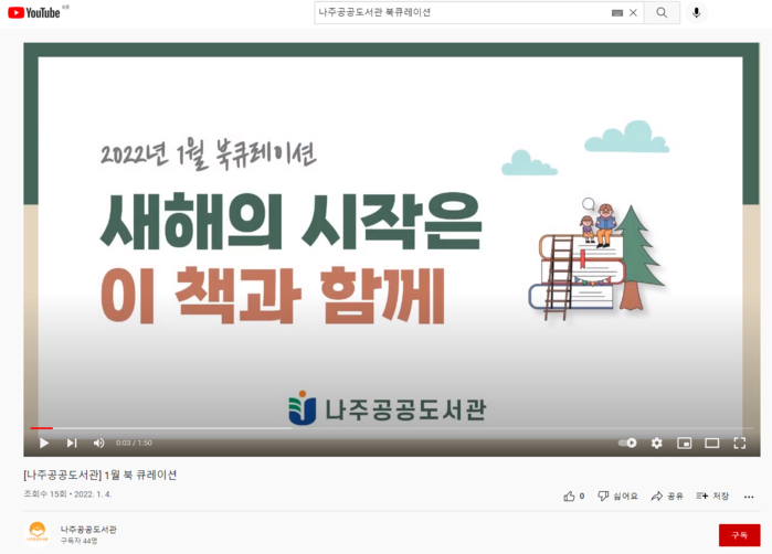 김도진 관장은 “지역사회의 책 읽는 분위기를 조성하고자 다양한 주제로 북 큐레이션을 준비했으니 많은 관심 바라며, 이용자의 도서 선택에 도움이 되길 바란다”고 말했다.