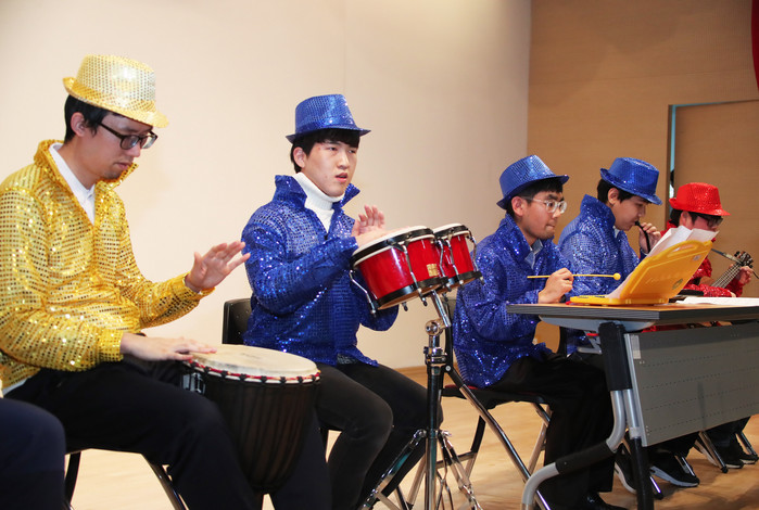 | ▲ 당진장애인복지관이 주최한 '꿈 페스티벌'에 행사 참가자가 그간 갈고닦은 연주실력을 뽐내고 있다. |