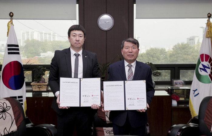 | ▲ 26일 백경현 구리시장(오른쪽)이 시장실에서 롯데시네마 구리아울렛점 박승일 점장과 ‘다자녀 가정 가족 사랑 영화 관람권 및 현장 할인 지원 사업 협약’을 체결하고 기념촬영을 하고 있다. <사진제공=구리시> |