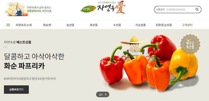 | ▲화순군 농특산물 온라인 쇼핑몰 화순팜(자연속愛) 누리집 메인화면 모습(사진=화순군) |