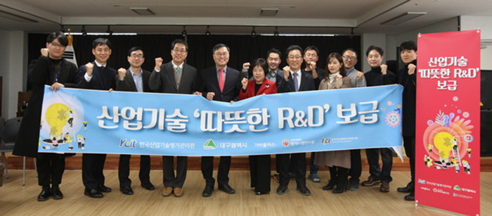 | ▲'따뜻한 연구개발 결과물' 전달식 후 함께 다짐을 외치고 있다.(사진=대구시 제공) |
