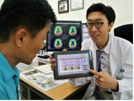 | ▲ 가바플러스에서 개발한 닥터브레인(치매인지치료기)으로 임상 테스트를 하고 있다. (사진=대구시 제공) |