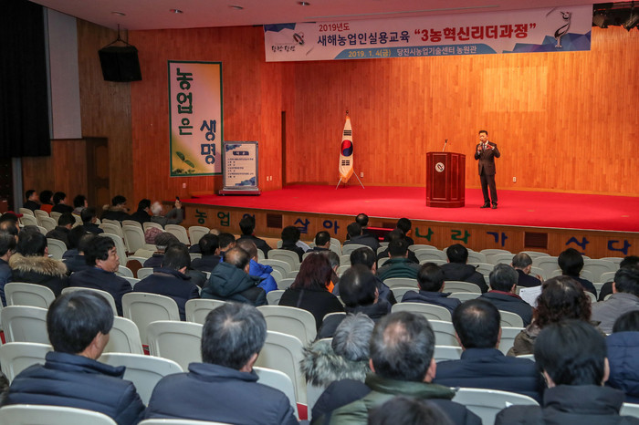 4일 개강한 3농혁신 리더 과정은 지역 내 이‧통장과 농업인단체 임원 등 200여 명을 대상으로 ‘농정비전과 패러다임 전환’을 주제로 한 특강과 더불어 농약 허용물질목록 관리제도(PLS)와 농지은행사업에 대한 설명, 2019년 농촌지도사업 및 교육 안내 등으로 구성됐다.