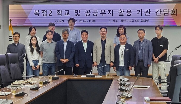 [세계로컬타임즈] 성남시의회 이군수 시의원(신흥2동·신흥3동·단대동)은 5월 23일, 성남시의회 5층 회의실에서 LH, 성남교육지원청, 성남시청 재건축과 관계 공무원들과 함께 복정2지구 내 학교부지 및 공공부지 활용 방안을 논의하는 간담회를 개최했다.