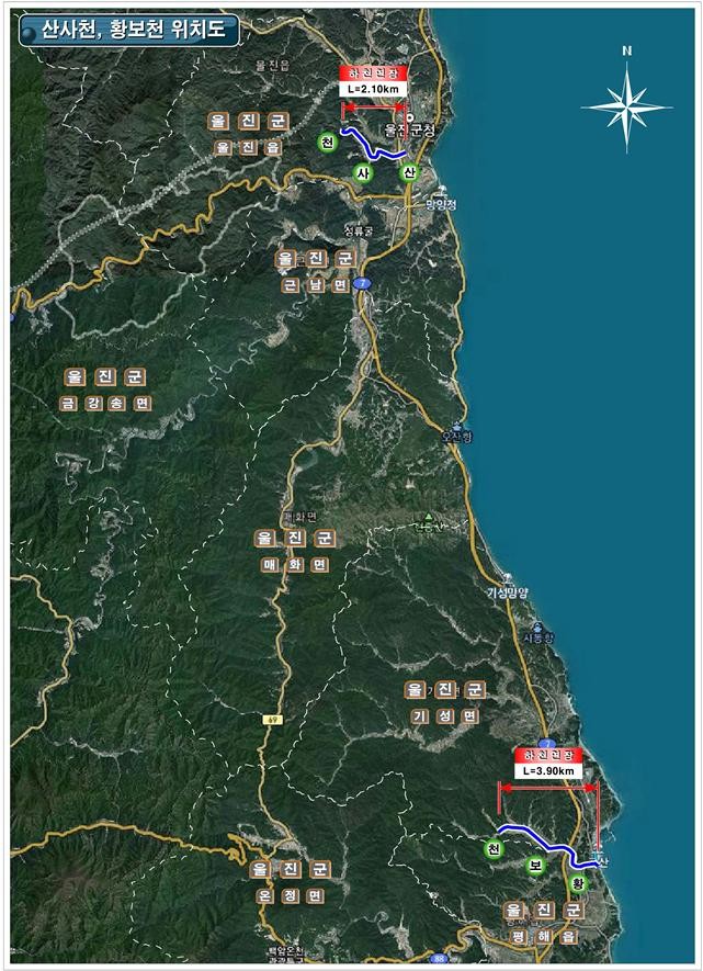 주요 사업내용은 사업비 79억원을 들여 울진군 울진읍 읍남리 산사천 2.1㎞ 및 기성면 황보리 황보천 3.9㎞에 대해 제방보강 2.1㎞·교량 3개소·보 낙차공 2개소·배수시설 8개소를 정비하고, 38필지 7,304㎡ 의 사유지 편입보상을 한다.