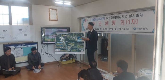 | ▲ 산사·황보천 하천재해예방사업에 주민들의 의견 반영을 위해 주민설명회를 하고 있다. (사진=경북도 제공) |
