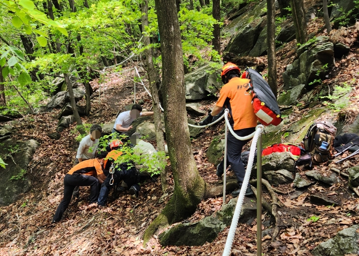 현장에는 수동119지역대원들이 먼저 등반해 접근하여, 소방헬기 도착 전까지 환자에 대한 평가와 응급처치를 실시하고 헬기 구조를 위한 개활지를 확보하는 등 선제적 대응을 펼쳤다.