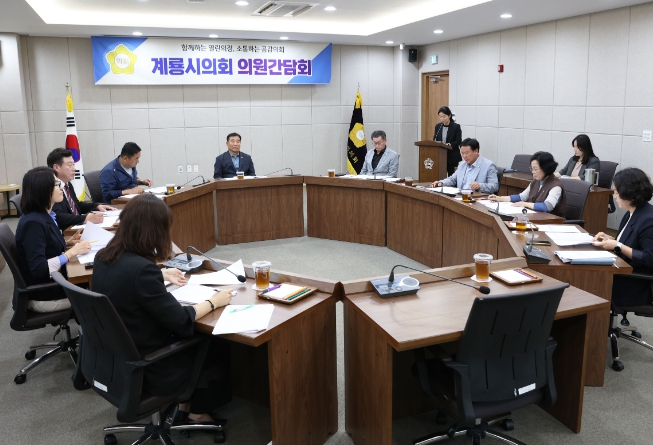 이번 간담회에서는 집행부 안건으로 ▴계룡시 공동육아나눔터 활성화에 관한 조례안 ▴계룡시 공직자 부조리 신고 포상금 지급에 관한 조례 일부개정조례안 등 조례 제·개정안 8건과 ▴계룡시 교통약자 특별교통수단 민간위탁 동의안 ▴계룡시문화관광재단 출연금 지원 동의안 ▴2025계룡軍문화축제 추진상황 보고 등 동의안 2건 및 현안설명 3건, 그리고 의회 소관 사항 ▴계룡시 발달장애인 권리보장 및 지원에 관한 조례안(이용권의원 대표발의) 등 3건을 포함한 총 16건에 대하여 심도 있는 의견을 나누었다.