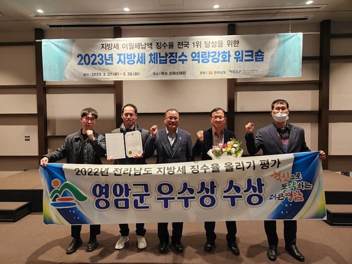 | ▲ 징수율 올리기 우수기관 수상 사진(사진=영암군) |