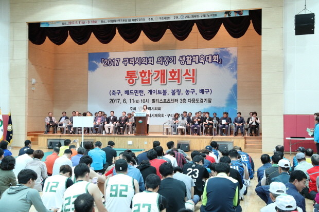 [세계로컬신문 고성철 기자] 경기도 구리시의회(의장 민경자)는 지난 11일 구리시 멀티스포츠센터에서 관내 생활체육동호회 회원 등 600여명이 참석한 가운데 '2017 구리시의회 의장기 생활체육대회' 개막식을 갖고 종목별로 열전에 돌입했다.
