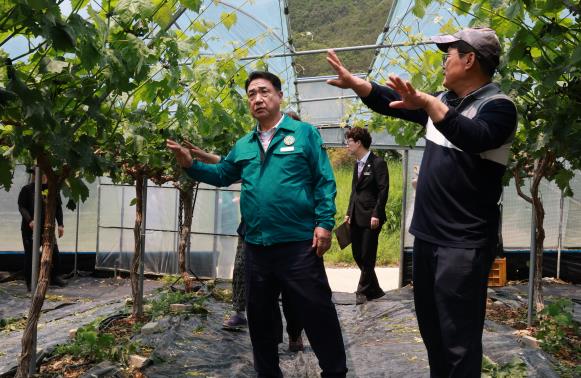 정 군수는 이날 오후 개인 휴가를 반납하고 직접 현장을 찾아, 상처 입은 과일과 떨어진 열매로 뒤덮인 과수원 곳곳을 살피며 농가의 고충을 청취했다.