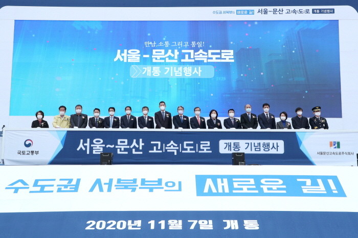 이날 개통식에는 손명수 국토교통부 제2차관을 비롯해 심상정·한준호·홍정민·이용우 국회의원 등 고양시 지역구 국회의원들과 이용철 경기도 행정2부지사·이재준 고양시장·이길용 고양시의회 의장·손태락 서울문산고속도로 사장·윤홍 GS건설 신사업부문 대표 등 관계자 100여명이 참석해 축하했다.