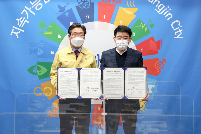 8일 당진시청 목민홀에서 김홍장 시장과 충남경제진흥원의 오광옥 원장이 참석한 가운데 ‘소상공인 경영환경개선 지원사업’ 업무 위탁 협약식을 가졌다.