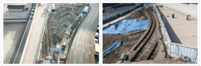 일제강점기 시대, 광화문 월대 동·서편 만나 세종로로 향하는 전차 철로 발견