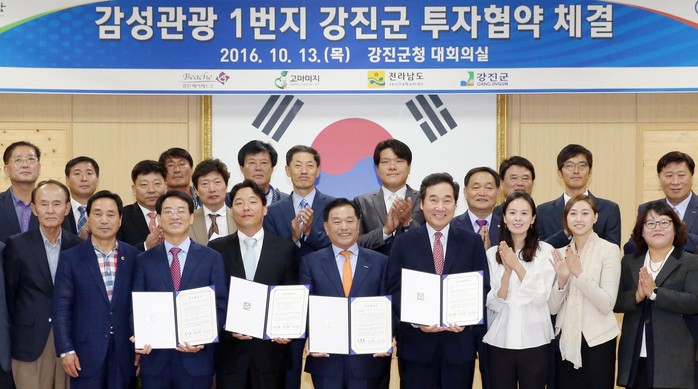 [세계로컬신문 온라인뉴스팀] 전라남도와 강진군은 13일 이낙연 도지사, 강진원 군수, 김호남 다산베아채컨트리클럽㈜ 회장, 김재용 고마미지㈜ 대표이사 등이 참석한 가운데 590억 원 규모의 투자협약을 체결했다.