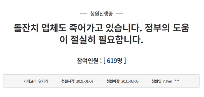 한편 전국 돌잔치업계 종사자들은 현재 청와대 국민청원도 진행 중인 가운데 이날 오후 3시 기준 619명이 동의한 상태다.