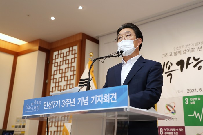 [세계로컬타임즈 홍윤표 조사위원] 김홍장 당진시장은 30일 당진시청 해나루홀에서 열린 민선7기 3주년 기자회견에서 올해 하반기 시정 목표로 ‘회복과 도약’을 강조했다.