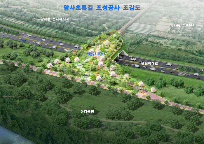 올림픽대로로 단절된 암사동 선사유적지와 한강을 녹지로 연결하는 ‘암사초록길’은 올해 폭 50m, 녹지 6,300㎡ 규모로 준공, 시민에게 개방한다. 올림픽도로와 반포 일대 주거지역을 연결하는 ‘반포덮개공원’도 올해 현상공모와 설계용역에 들어간다.