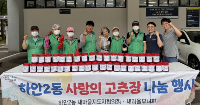 한편, 하안2동 새마을협의회와 부녀회는 매년 ‘사랑의 고추장 나눔’ 외에도 ‘사랑의 김장 나눔’ 등 다양한 이웃돕기 활동을 펼치며 지역 내 건강한 나눔 문화를 꾸준히 확산해 나가고 있다.
