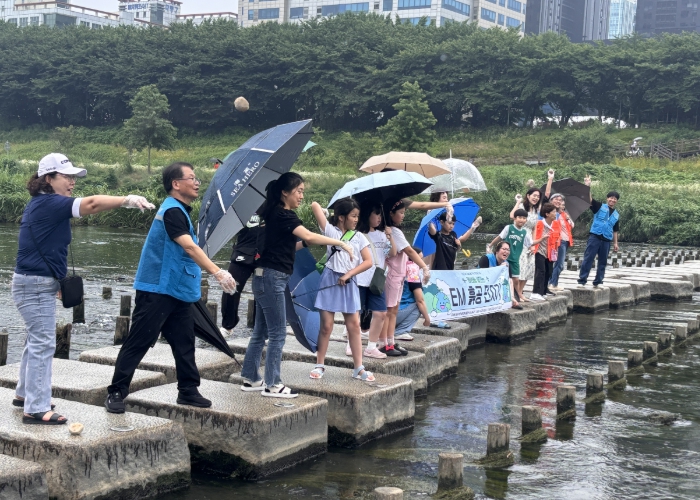 이번 사업은 안양천의 수질 개선을 위한 환경 보호 활동으로, 참가자들이 EM 흙공을 직접 만들어 하천에 던지며 수질 정화에 기여하는 프로그램이다.