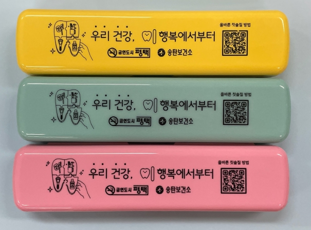 구강 교육 시 칫솔질 실습을 위해 사용하는 칫솔세트에는 QR코드가 부착돼 있어, 스마트폰으로 QR코드를 스캔하면 올바른 칫솔질 방법을 안내하는 교육 영상을 시청할 수 있다.
