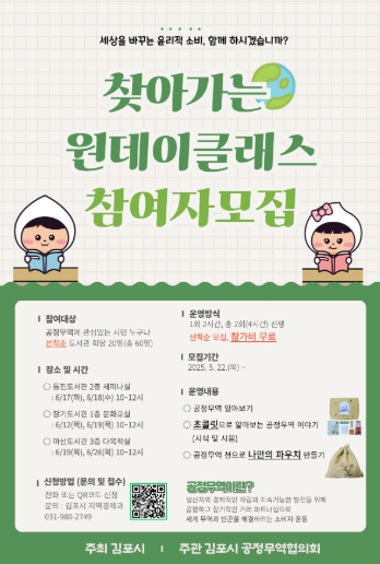 아울러, 김포시는 관내 초·중·고등학교에서 6월부터 9월까지 청소년들을 대상으로 윤리적 소비문화 정착과 공정무역에 대한 인식 확산을 위해 '찾아가는 공정무역 청소년 교실'을 진행한다고 밝혔다.