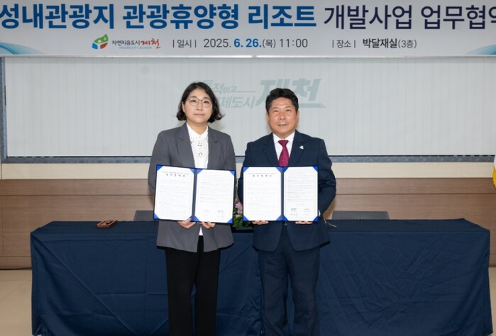 시는 지난 26일, 제천시청에서 리조트 개발 업무협약을 체결하고, 대규모 리조트 개발을 본격 추진한다고 밝혔다.