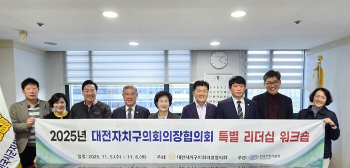 오관영 대전자치구의회의장협의회장은 “이번 워크숍은 지방의회의 전문성과 리더십을 강화하고, 서울의 선진 자치운영 사례를 직접 보고 배우며 다양한 현안에 대한 해법을 함께 모색하는 뜻깊은 자리였다”며 “앞으로도 대전 5개 자치구 의회가 소통과 협력을 통해 시민이 체감할 수 있는 정책 성과를 만들어가겠다”고 밝혔다.