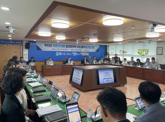 [세계로컬타임즈] 전남 무안군은 지난 23일 부서장 등 40여명이 참여한 가운데 기후변화에 대응하는 친환경 교통수단으로 자전거 이용을 활성화하기 위한 ‘무안군 자전거 이용 활성화계획 수립 용역’ 중간보고회를 개최했다.