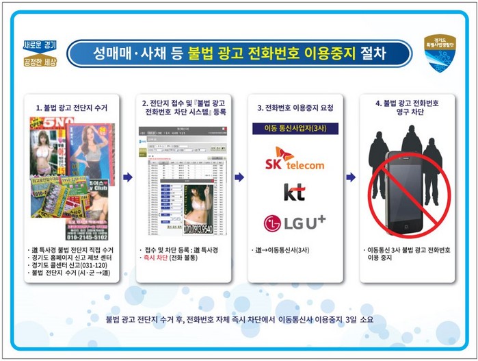 [세계로컬타임즈 이배연 기자] 경기도는 고리 대부 및 청소년 유해매체물 등 불법광고 전화에 따른 시민의 피해사례가 급증함에 따라 이를 차단해 피해 예방에 나서 큰 성과를 얻고 있다.