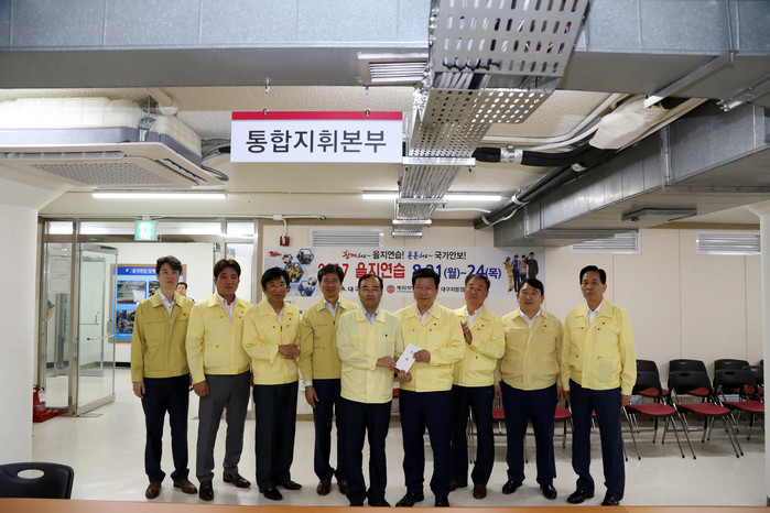 이날 확대의장단은 을지연습 주관부서인 안전정책관으로부터 을지연습 훈련상황에 대해 보고받고 공무원과 군인, 경찰 등 관계자들의 훈련대비태세를 둘러봤다.