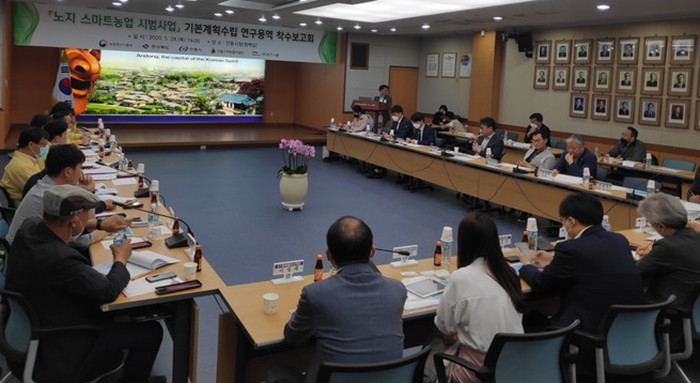 | ▲‘노지스마트 농업 시범사업’ 기본계획수립 착수보고회를 개최하고 있다.(사진=경북도 제공) |