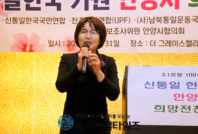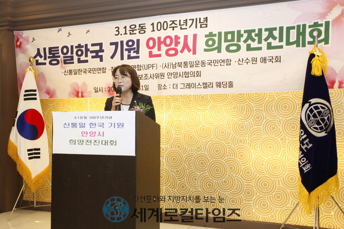 (사)남북통일운동 국민연합과 세계일보조사위원 안양시협의회는 3·1운동 100주년을 기념해 새로운 통일시대를 준비하는 ‘신통일한국 기원 안양시 희망전진대회’를 지난달 31일 안양에서 열었다.