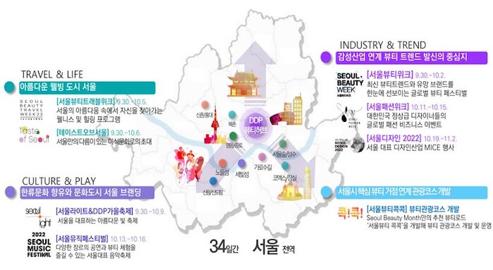 올해 처음으로 개최하는 ‘서울뷰티위크’(뷰티)는 물론, ‘서울패션위크’(패션), ‘서울뮤직페스티벌’(음악) 등 서울을 대표하는 대표 축제 총 10여 개의 행사를 10월 한 달간 릴레이로 개최한다. 축제를 계기로 서울의 매력적인 명소와 맛집, 숙박 등 서울관광과도 연계해 서울 전역으로 경제 활력을 확산시킨다.
