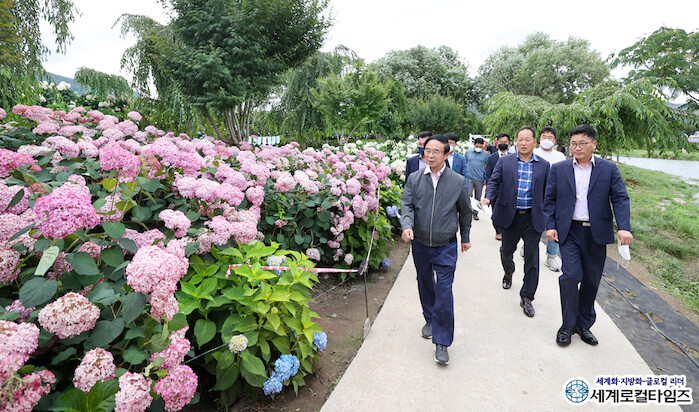 유구천 수변 일원에 만개한 수국정원을 둘러보며 임실군 관광자원개발에 적용할 수 있는 방안에 대해 모색하는 시간을 가졌다.
