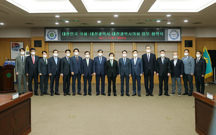 [세계로컬타임즈 민순혜 기자] 대전시와 국회는 갑천호수공원에 2024년 건립 예정인 국회통합디지털센터(이하 센터)의 성공적인 운영을 위해 27일 대전시청 대회의실에서 업무협약을 체결했다고 밝혔다.