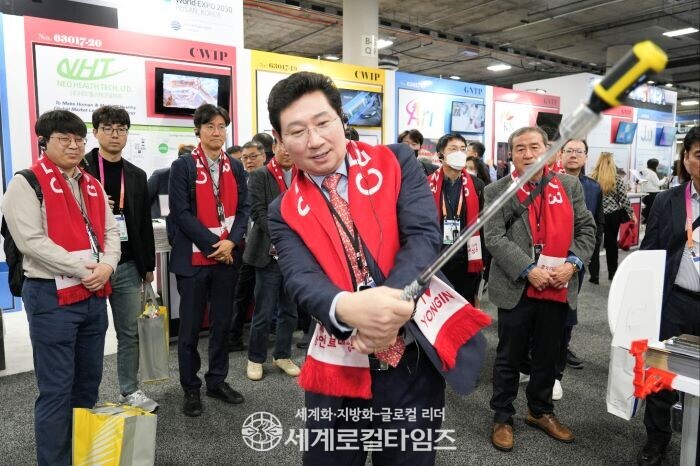 | ▲ 이상일 용인시장이 마고에서 개발한 시제품을 시연하고 있다. (사진=용인시) |