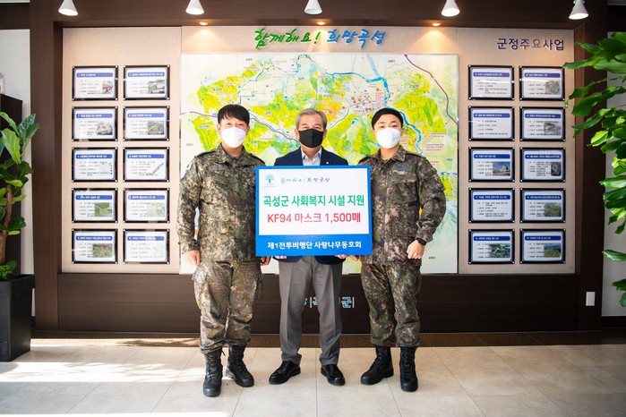 동호회 대표 간부인 1전비 항공정비전대 허원진 중사(항과고 38기)는 사랑나무를 대표해 곡성군청에 마스크를 전달했다.