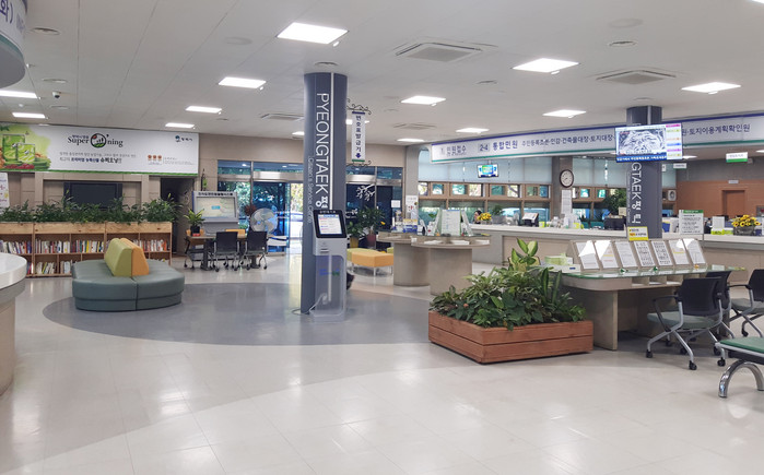 [세계로컬신문 최원만 기자] 경기도 평택시(시장 공재광)는 종합민원실을 ‘정부 3.0 민원안내 홍보 공간, 여권민원 등 민원 집중신청 공간, 민원신청 후 대기 공간, 민원인 사적 공간’ 등으로 실용과 색채를 가미한 4개 테마공간으로 환경을 개선했다.