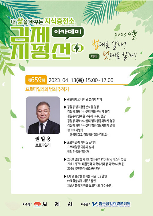 10일 김제시에 따르면 제659회 지평선아카데미에 권일용 교수를 초청해 ‘프로파일러의 범죄 추적기’라는 주제로 강연을 진행한다.