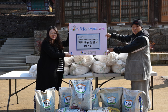 [세계로컬타임즈 최성우 기자] 지난 14일 파주 보광사는 양주시 회천노인복지관 무료급식을 이용하는 양주시 노인들을 위한 자비나눔 쌀 연간 4,000kg 기증 전달식을 가졌다.