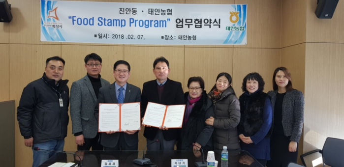 [세계로컬신문 최원만 기자] 경기도 화성시 진안동과 태안농협이 지난 7일 태안농협에서 ‘Food Stamp 프로그램’ 업무 협약을 체결했다.