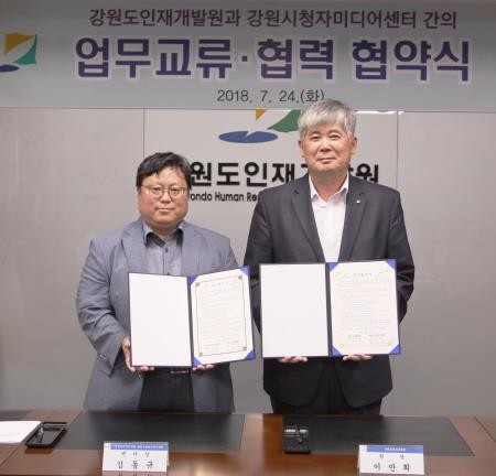 [세계로컬신문 홍인기 조사위원] 강원도인재개발원(원장 이만희)과 방송통신위원회 강원시청자미디어센터(센터장 김동규)는 24일 인재개발원에서 미디어를 활용한 공직자의 소통 활성화를 위해 상호협력 업무협약을 체결했다.