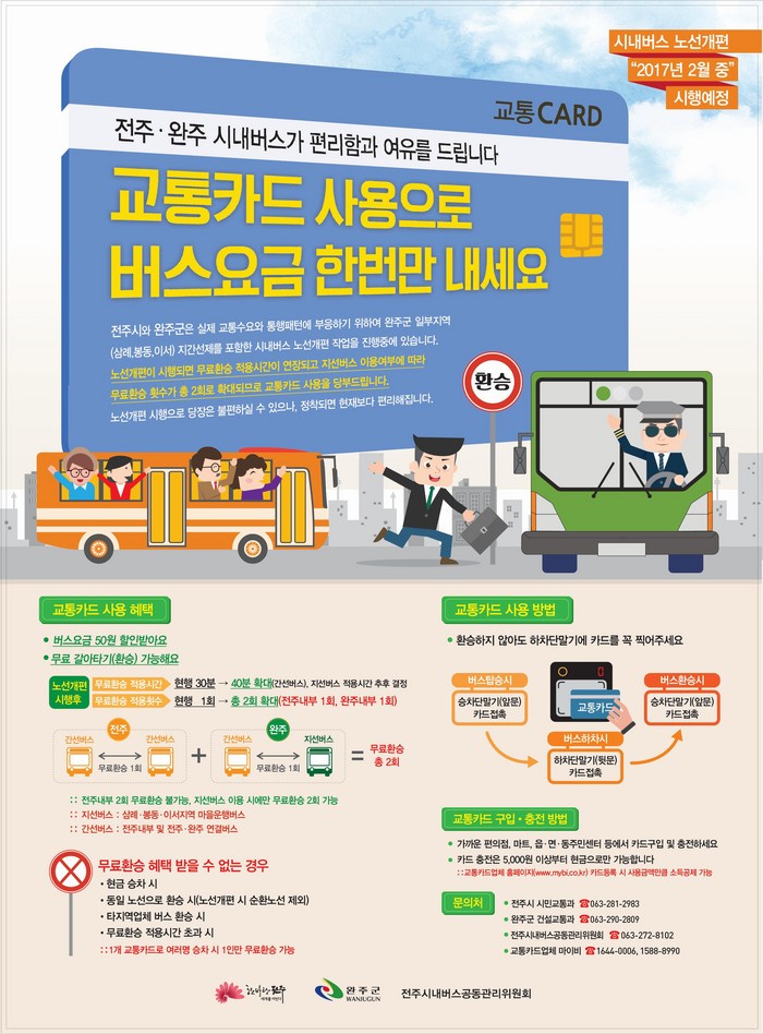 이에 완주군은 많은 주민들이 교통카드를 통해 무료 환승을 적극 이용해줄 것을 권장하고 나섰다.