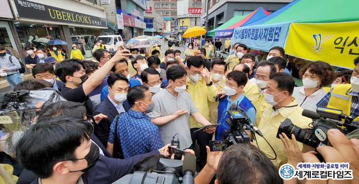 | ▲지난 7월 8일 더불어민주당 송영길 대표가 익산 수해 피해 상가거리를 방문했다.(세계로컬타임즈 DB) |