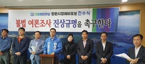 전수식 민주당 창원시장 예비후보는 17일 기자회견을 열어 경선 경쟁 상대인 허성무 예비후보와 가까운 것으로 알려진 창원시 지역 위원장 1명이 권리당원 전화번호를 이용해 여론조사를 한 의혹을 제기하며 진상조사를 촉구한 바 있다.