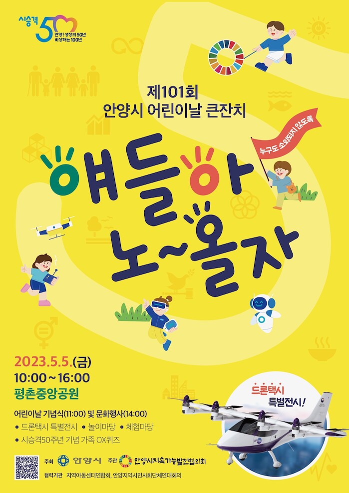 최대호 안양시장은 “어린이들의 호기심을 자극하고 꿈을 키울 수 있는 많은 행사를 준비했다”며 “어린이들이 가족, 친구와 함께 마음껏 뛰어놀고 행복한 추억을 만드는 시간이 되길 기대한다”고 말했다.